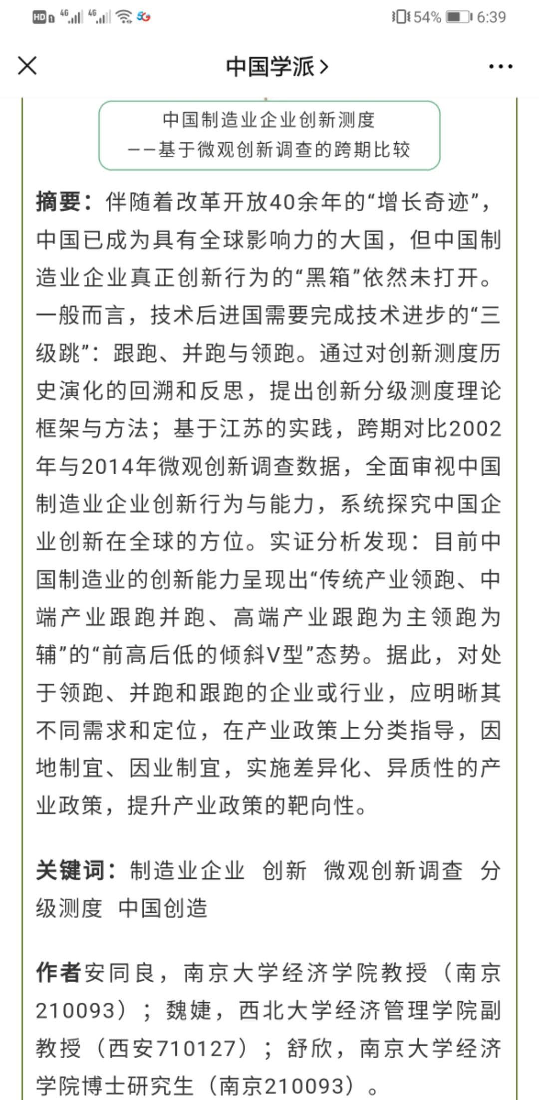 该论文回答了与世界相比,中国制造业创新程度如何的问题,关注了创新经济学最原始的问题——创新测度。文章基于欧盟CIS框架自主设计的符合中国实践特征的微观创新调查问卷,通过大量调查数据以及对创新测度历史演化的回溯和反思,提出了测度创新的新方法——创新分级测度。基于该方法,文章全面审视了中国制造业企业创新行为与能力,系统探究了中国企业创新在全球的方位,提出了因地制宜、因业制宜,实施差异化、异质性的产业政策分类指导意见,为提升我国产业政策的靶向性提供新的有益建议。